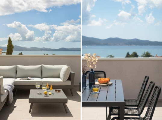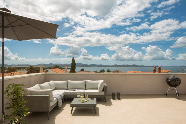 Na prodaju je atraktivna vila sa prekrasnim pogledom na more u Diklu, najatraktivnijem predjelu u gradu Zadru i okolici. Vila je novosagrađena sa podrumom, prizemljem, prvim katom, bazenom te izlazom na krovnu terasu na kojoj se nalazi jacuzzi sa direktnim pogledom na more. Vila je potpuno opremljena i funkcionalna sa svim komunalnim priključcima kao Internet, struja, voda i gradska kanalizacija. Pri gradnji birani su vrhunski stručnjaci u svim fazama gradnje kao i uređenja i završnih radova. Ukupno je četiri sobe, svaka soba ima klime, moderna kupatila sa walk-in tuševima te jedna soba i kupatilo sa kadom, priključke za televiziju i Internet te je ugrađeno i podno grijanje. Na priloženom tlocrtima se vidi raspored prostorija.